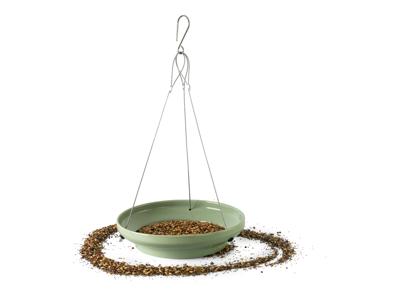 The Splash & Feed is one of our most popular garden bird feeders in part due to its versatility. Our customers like how they can fill this feeder with either fresh water for dipping and drinking or with seeds and fruit for feasting. Sturdy wire secures the ceramic plate and allows it to be hung easily from a tree and the clean, simple design blends superbly into the garden.
